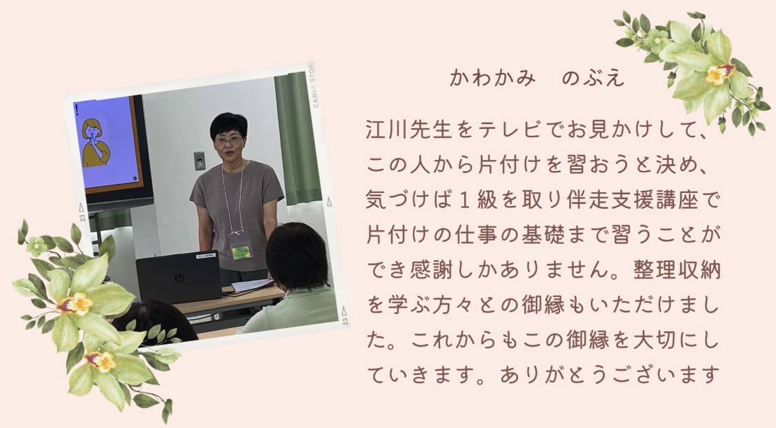 2020年にスタートした片付けプロ向けの江川佳代メソッド片付けコンサル塾「伴走支援型連続講座」の4期生が卒塾されました。