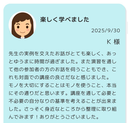 【2級講座・感想】モノとの向き合い方が新鮮でした!